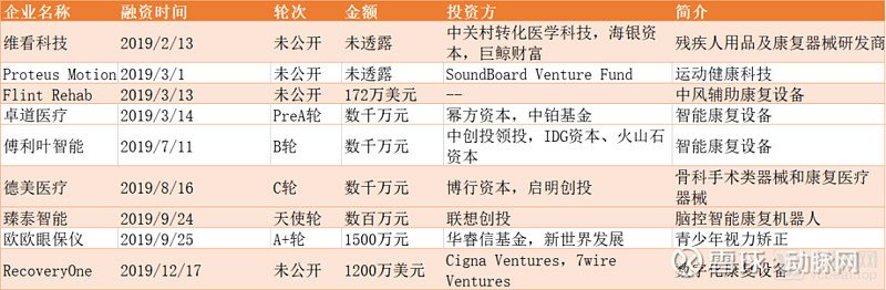 2019智能康复设备融资盘点 数据来自动脉网数据库
